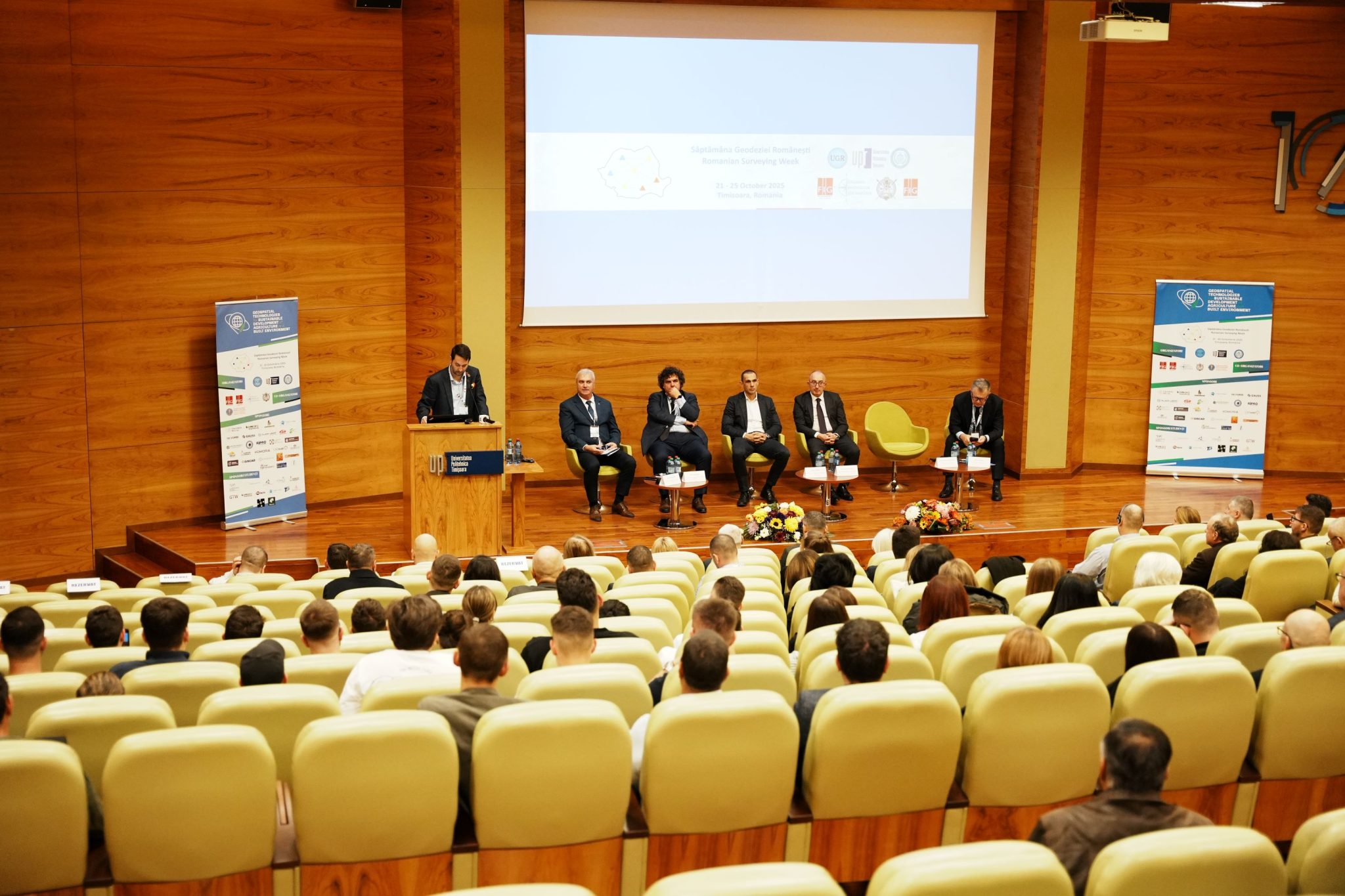 Centrul de Conferinte al Universitatii Politehnica Timisoara a gazduit miercuri, 22 octombrie 2025, deschiderea oficiala a celei de-a VI-a editii a Saptamanii Geodeziei Romanesti, eveniment care are loc pentru prima data la Timisoara, unul dintre putinele orase din Europa care are doua universitati ce ofera specializari in acet domeniu.